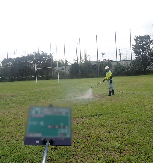 芝生の抑制剤散布