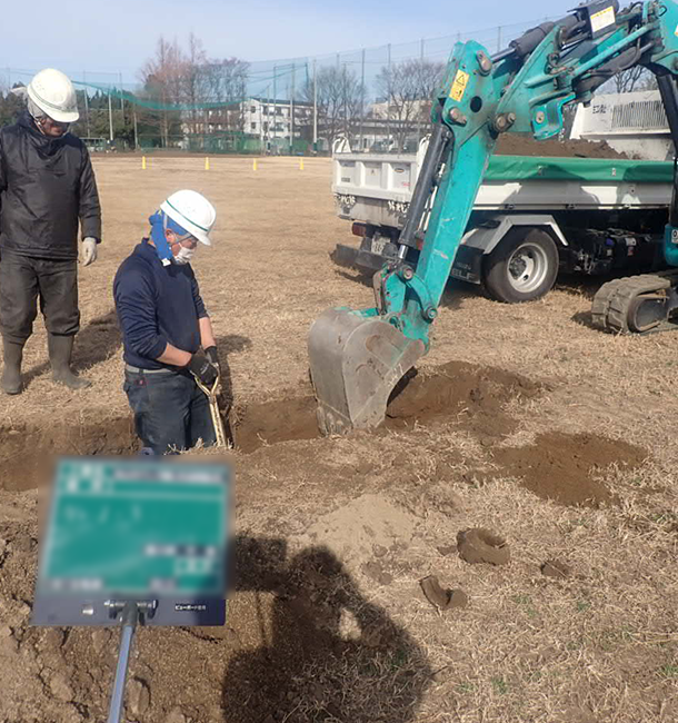 グランド内の配管撤去作業